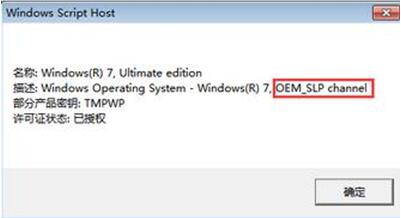 2、在新界面中,我們可以看到。圖中紅框標出的部分代表著你的系統密鑰類型。這里的是“OEM_SLPchannel”,即OEM授權版。