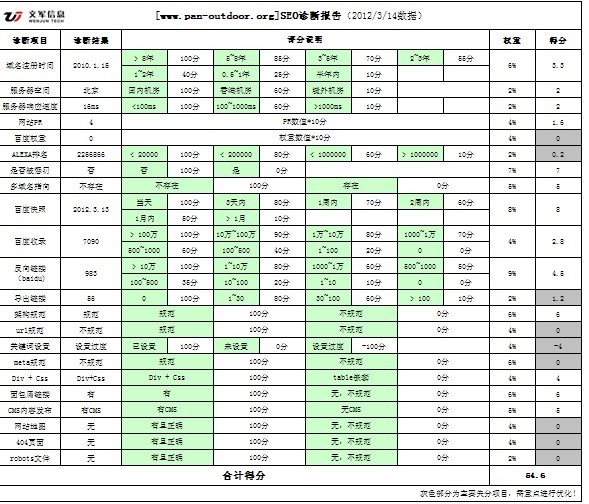 具體詳情詳見SEO診斷報告截圖: